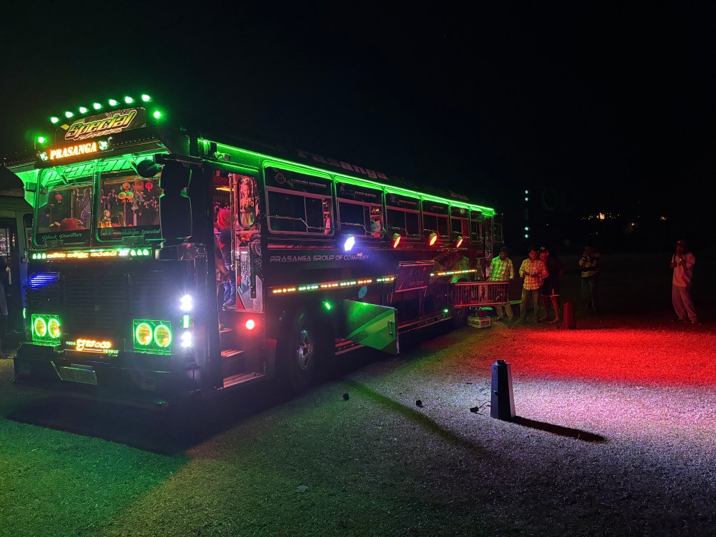 Our guide explained that those buses acted as moving discos in Sri Lanka. People book them for nearby sightseeing. At night, they park these buses at some spot and play songs and dance along. These are customized buses with lights and sound system. They looked very lively. We spent some time there with the locals and went back to our hotel.