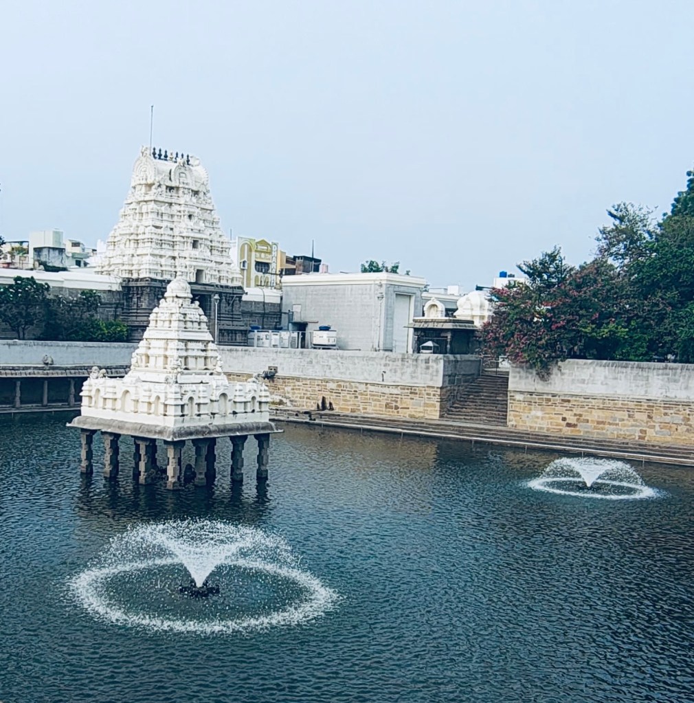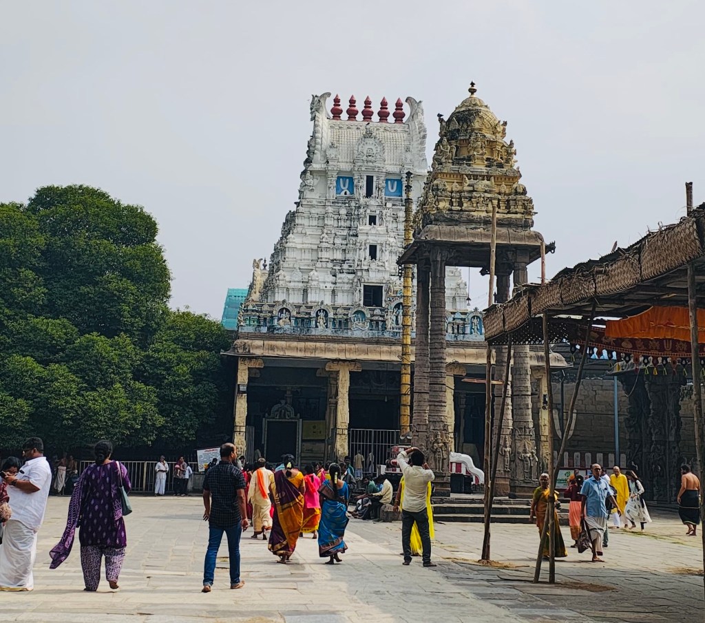 It is said that a visit to Kanchi is incomplete without seeing and touching the Bangaru Balli (Golden lizard) and this is located in Varadaraja Perumal temple. Perumal temple is around 7kms away from Kamakshi Amman temple. This temple is dedicated to lord Vishnu and is one among the 108 Divya Desams. Divya Desams are the temples of lord Vishnu and Lakshmi mentioned in the works of Alvars. The presiding deity is located on a small hillock named as hastagiri and the view of Perumal captivates the beholder. After visiting Perumal, there is a separate line for visiting the Bangaru Balli. It is said that touching this Bangaru balli would relieve one from any doshas or chronic diseases. The darshan of the Perumal was completed in a short span but there was a huge crowd near the bangaru balli. The line to the bangaru balli ends with a small ramp and by standing on this, the devotees get to touch the bangaru balli along with vendi balli (Silver Lizard). Overall, our visit to the temple went smoothly.